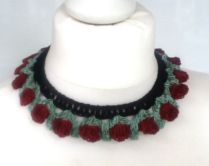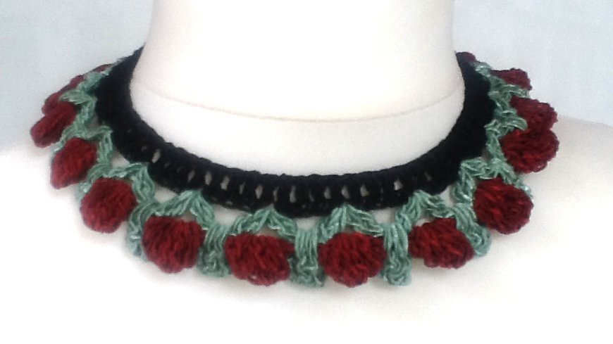 Das bezaubernde Rosenknospencollier passt genauso wundervoll zu romantischen Blusen, wie zur Tracht und Dirndl.