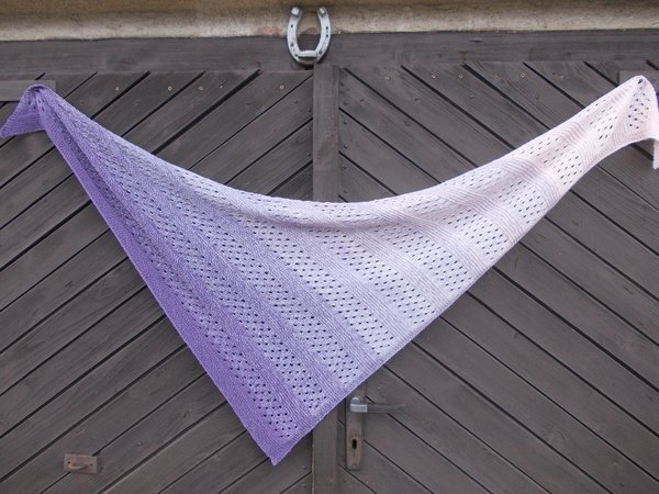 Das Tuch wird mit wenigen Maschen begonnen und durch gleichmäßiges Zunehmen bekommt es seine Dreieckform.