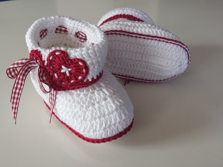 Dies ist eine Häkel-Anleitung für die auf dem Foto abgebildeten Schühchen nicht das fertige