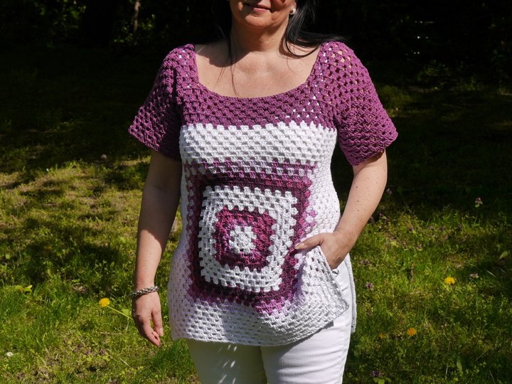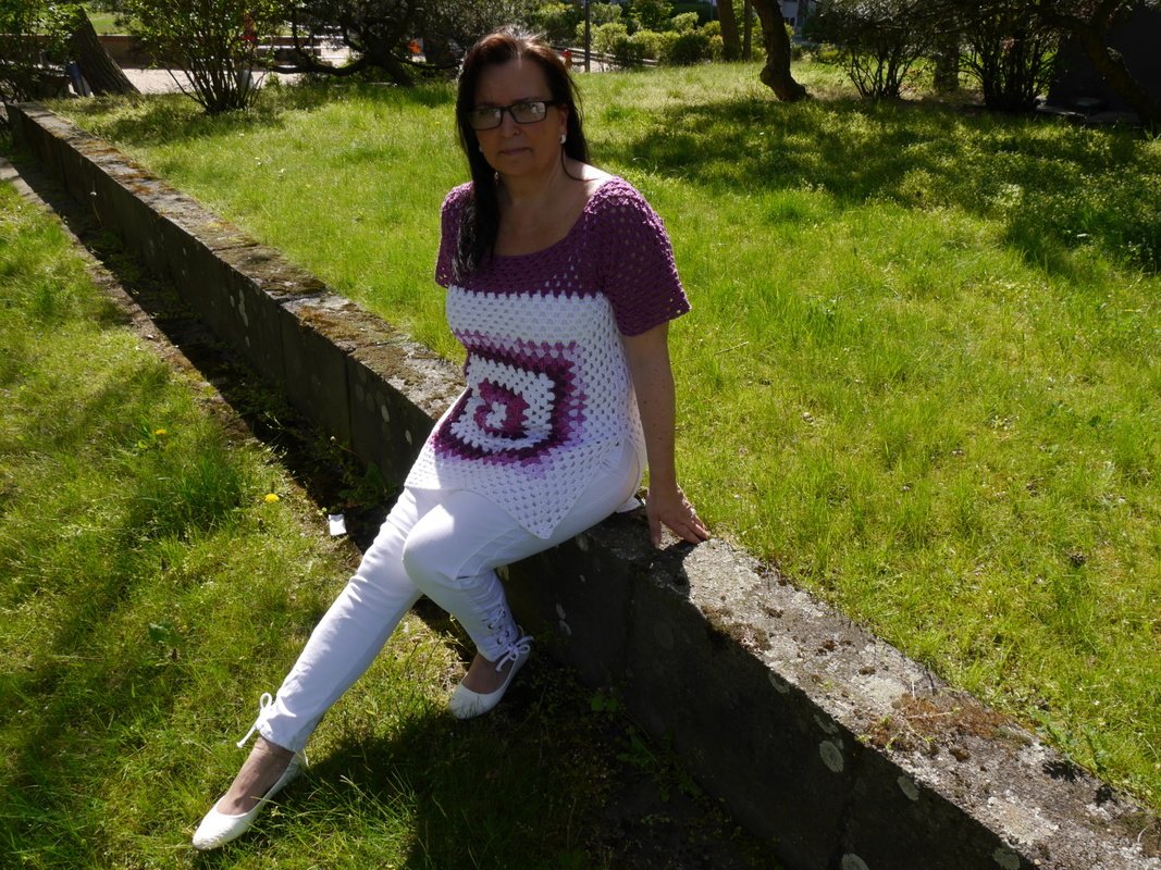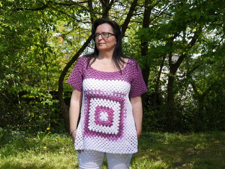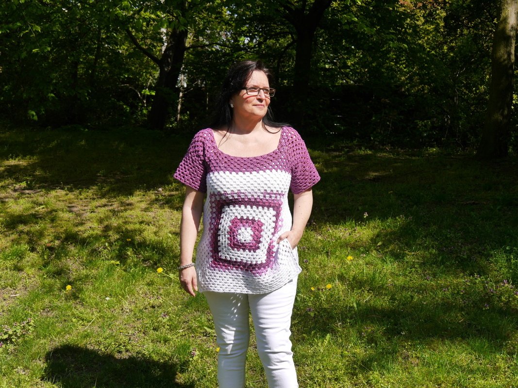 Diese Sommertunika kann mit jedem beliebigen Garn gearbeitet werden, das Nadelstärke 4 nicht überschreiten sollte, damit sie schön locker fällt.