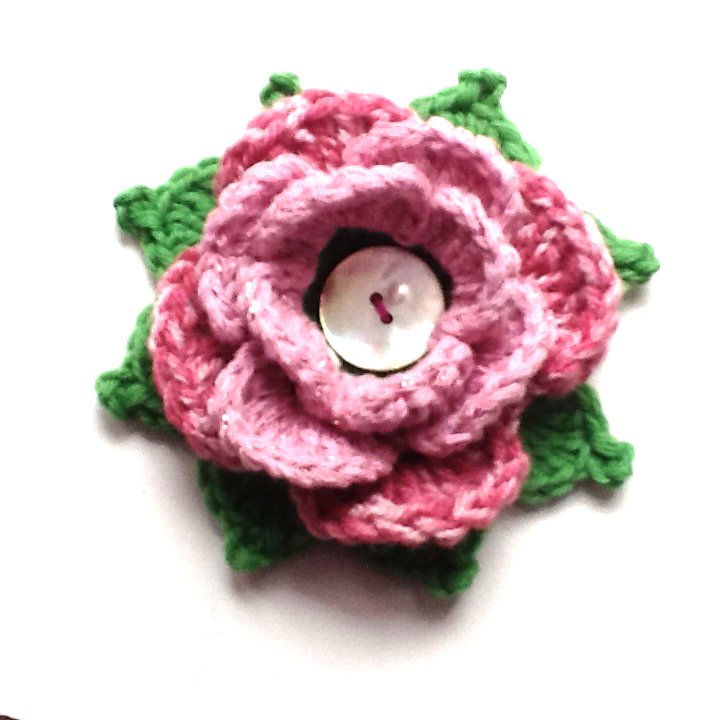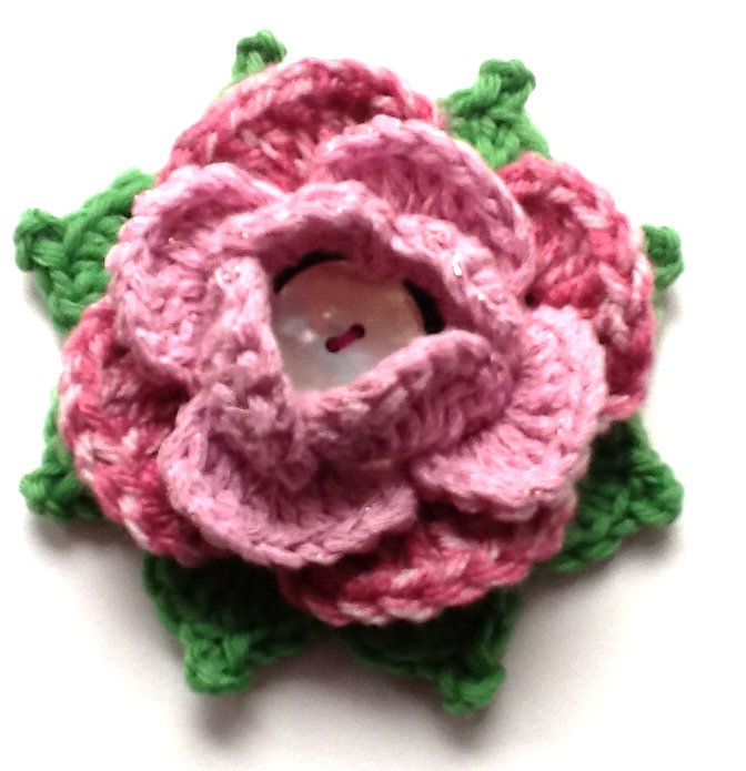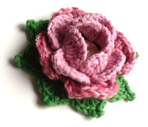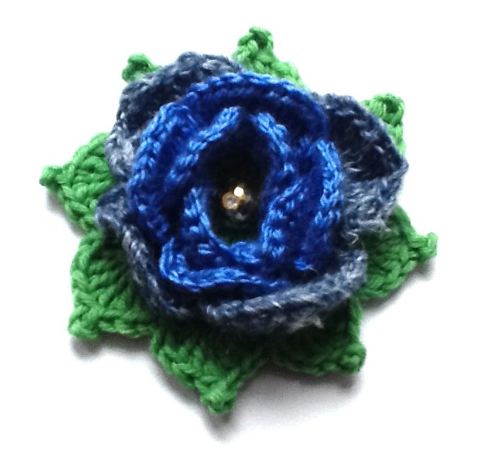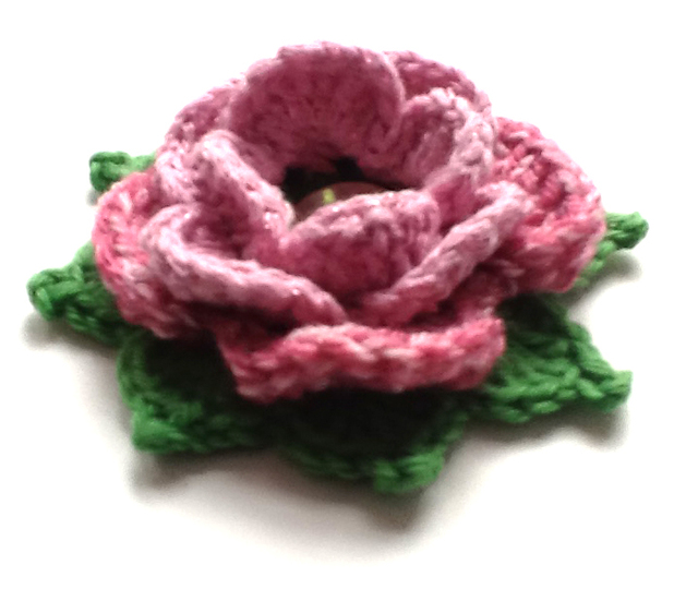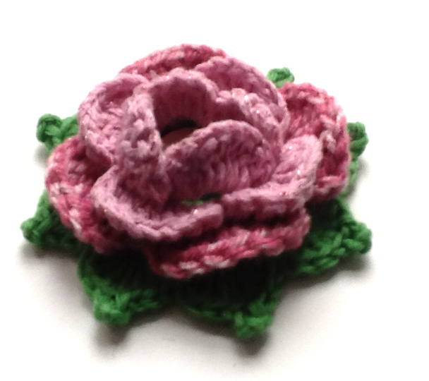 Diese schöne Rose mit den 16 Blütenblättern und den Kranz aus grünen Blätter ist mit meiner Foto für Foto- Anleitung einfach nach zu machen.