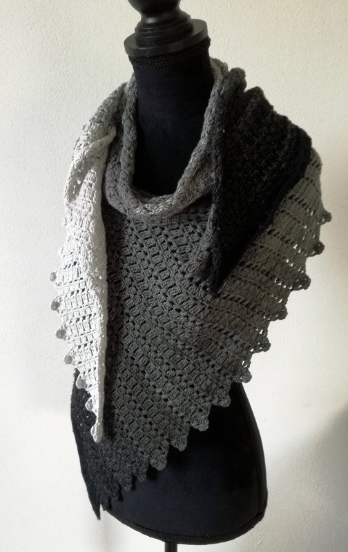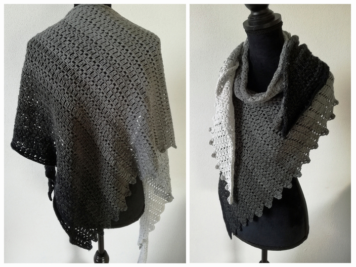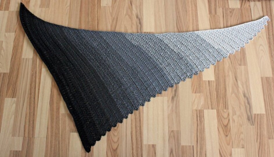 "Nachtschatten" ist ein asymmetrisches Dreieckstuch mit einer gezackten Kante.