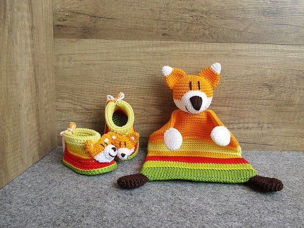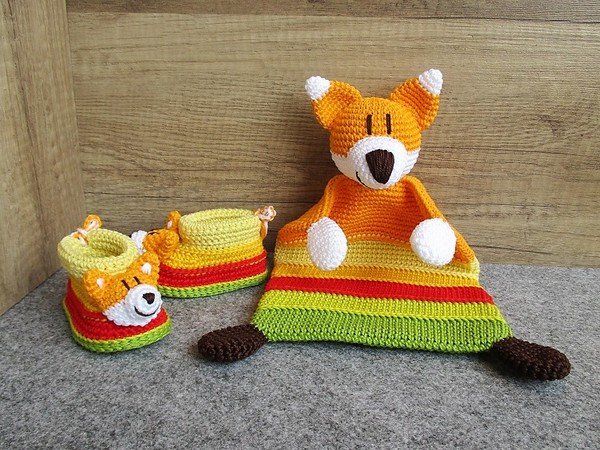 und https://www.crazypatterns.net/de/items/26130/haekelanleitung-baby-booties-babyschuehchen-fuchs-4-groessen