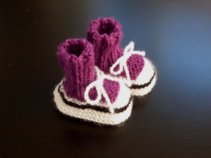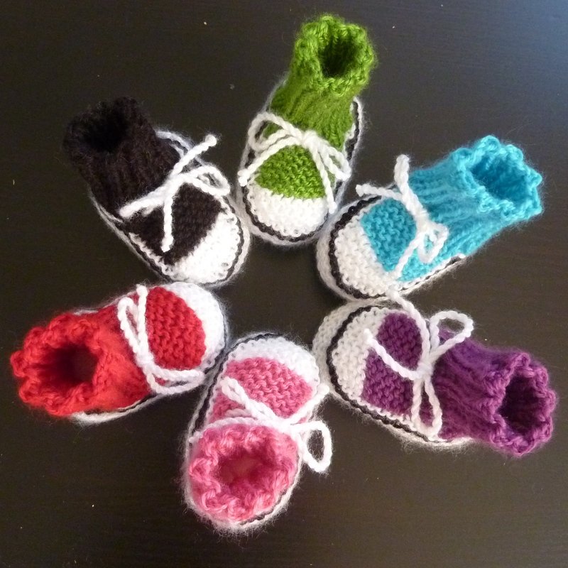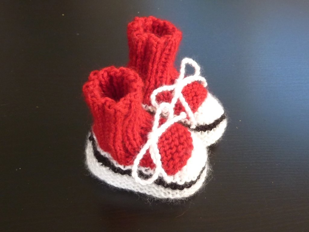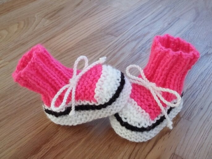 Die Strickanleitung im pdf-Format beschreibt recht einfach auf 4 Seiten mit Bildern wie man diese hübschen Babyschuhe im Turnschuh-Look strickt.