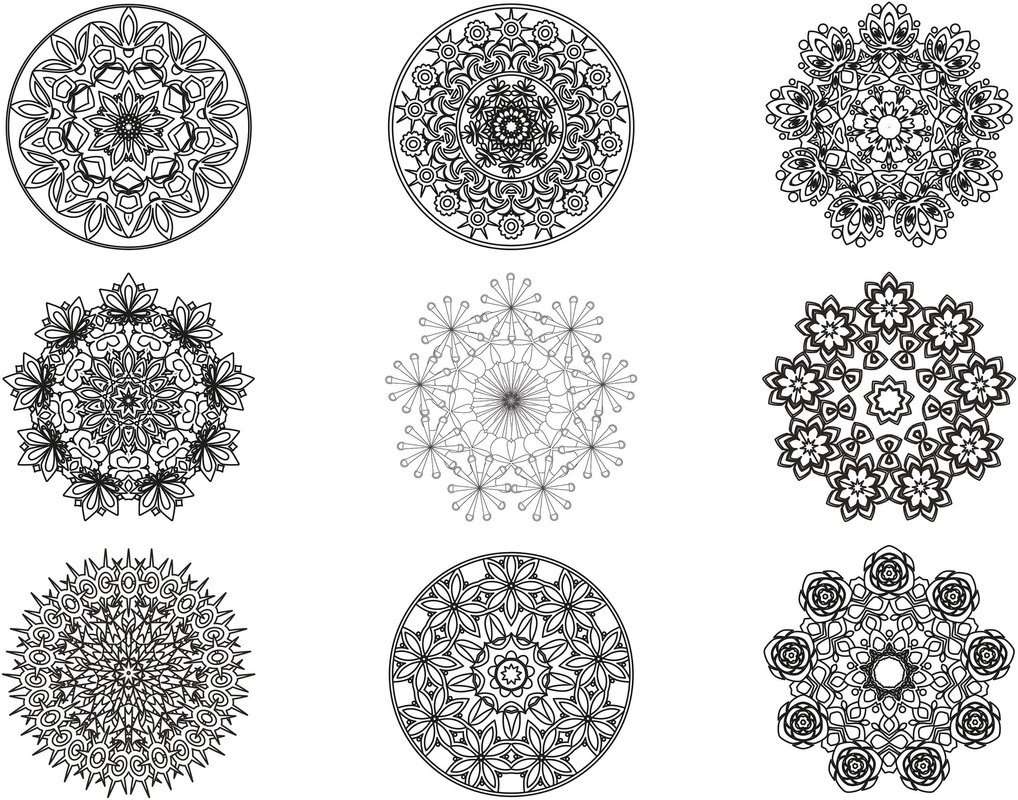 Neun verschiedene Mandalas zum immer wieder Ausdrucken und Ausmalen. Jedes ist passend für eine DinA4-Seite.