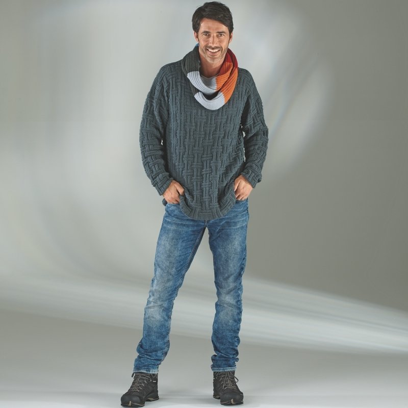 Strickanleitung Herrenpullover (ohne Schal) aus der Qualität "Piano" (Modellnr.: 756015).