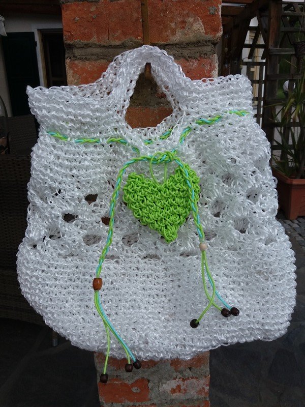 Schon lange überlege ich, was ich aus diesem Bindegarn aus Polypropylen häkeln könnte.
