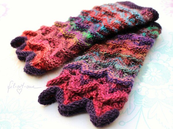 Die Beschreibung ist einfach und verständlich, das Muster ist weniger kompliziert, als es aussieht. Die Handstulpen kommen heraus wie auf dem Bild. Sehr schön!