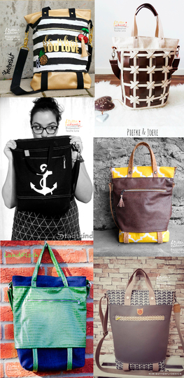 Unter den vielen verschiedenen Taschenschnittmusters ist dies wohl die Diva! Denn Juna trägt ihren eigenen Mantel. Elegant, akkurat und mit einem praktischen Seitenfach fällt er sofort ins Auge. Der Mantel wird original unten offen gelassen – Umhängetasche Juna hat nichts zu verbergen. Wenn Dir das aber zu offenherzig ist, kannst Du ihn, wie das auch manche Probenäherinnen gemacht haben, unten annähen.
