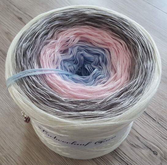 gearbeitet wurde der Loop mit einer Häkelnadel der Stärke 3.0 und verwendet habe ich 3 fädiges Farbverlaufsgarn ( 50 % Baumwolle/ 50 % Polyacryl) verbraucht habe ich um die 800 m Lauflänge.