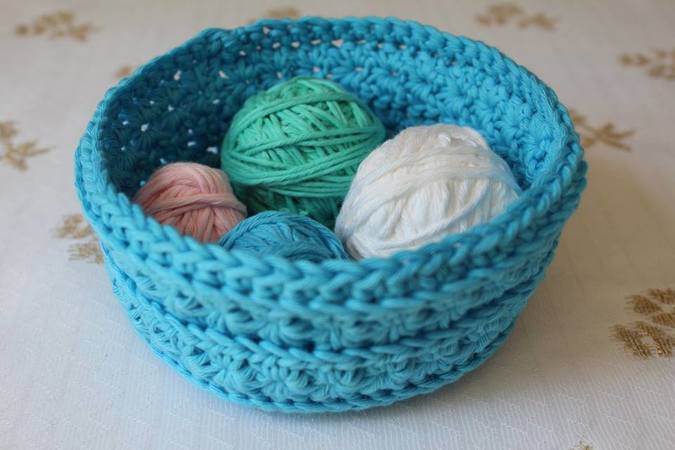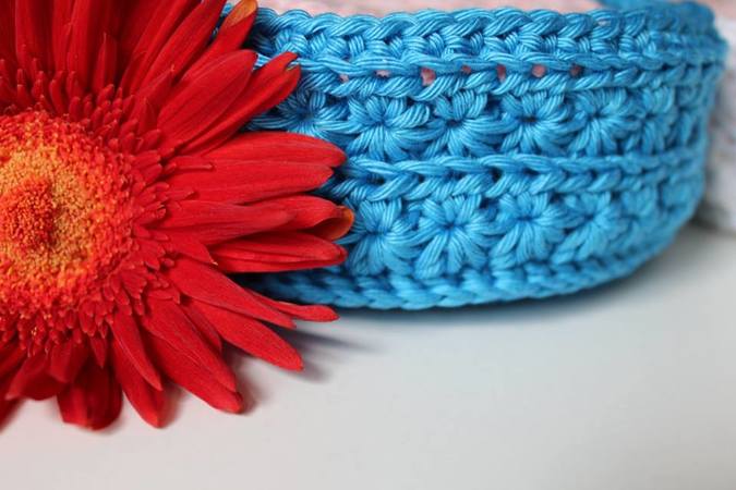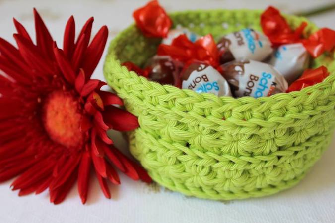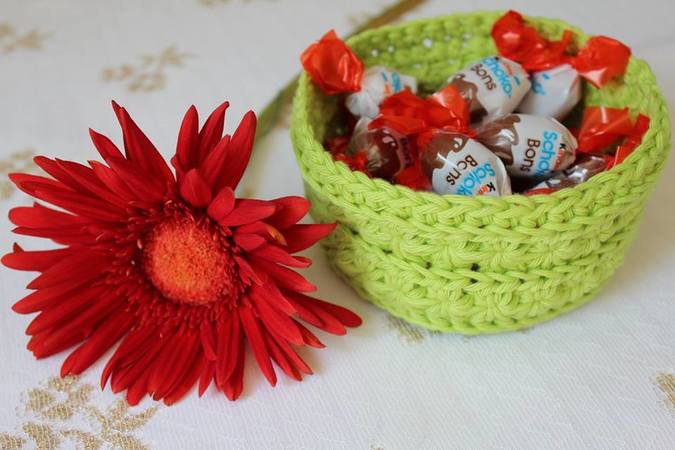 Das gehäkelte Körbchen können Sie auch zur Aufbewahrung von zum Beispiel Süßigkeiten & Co. verwenden.