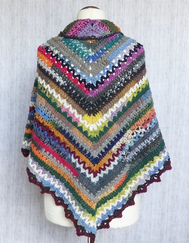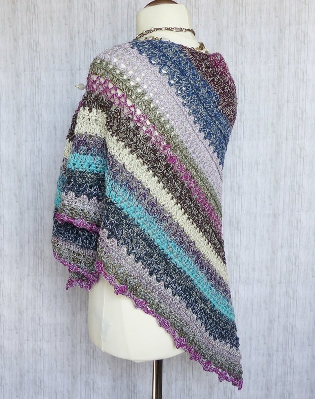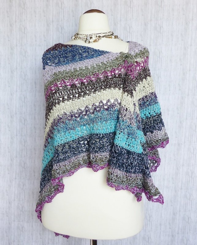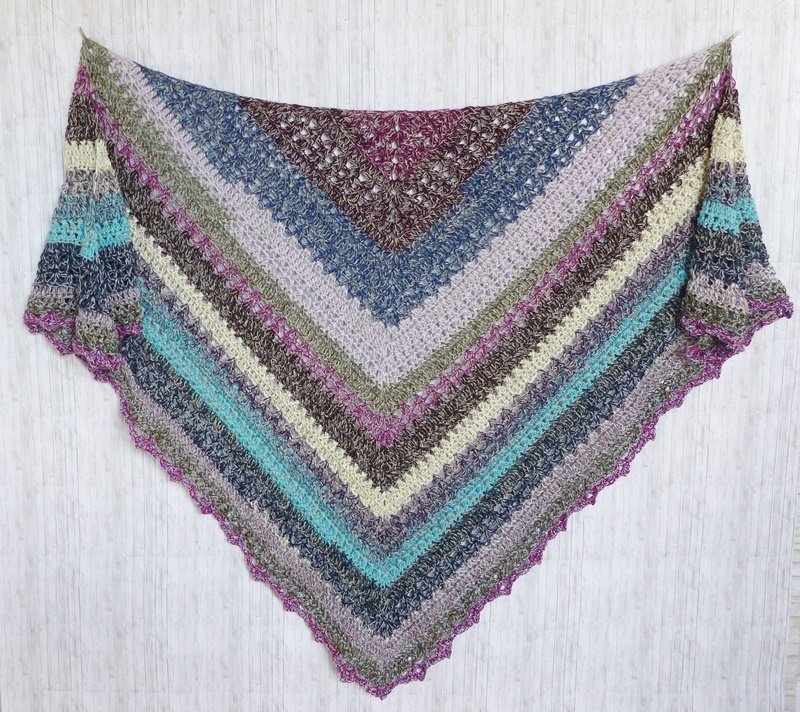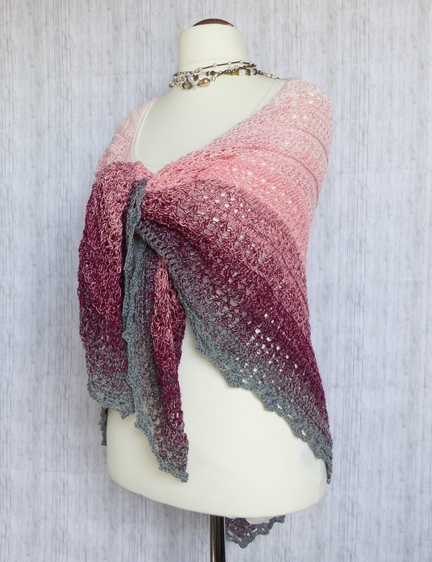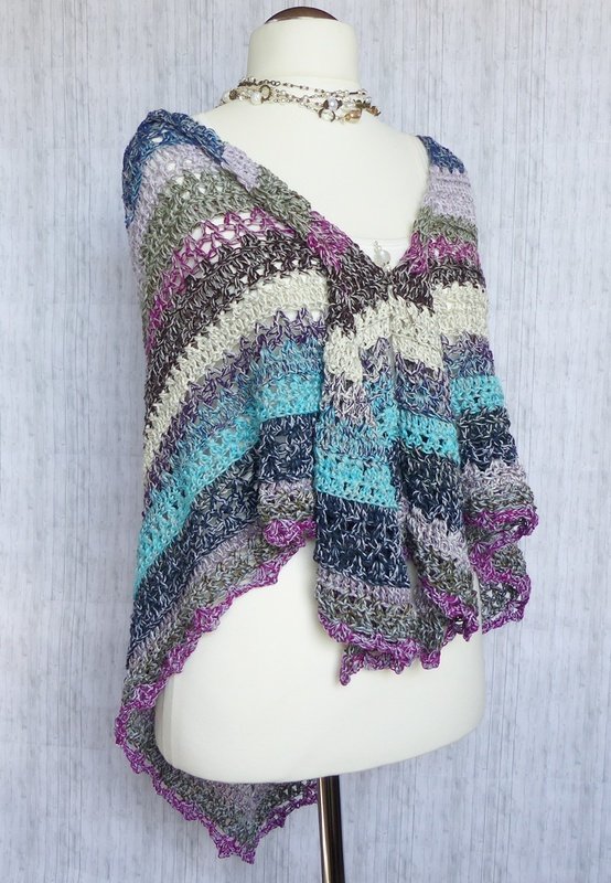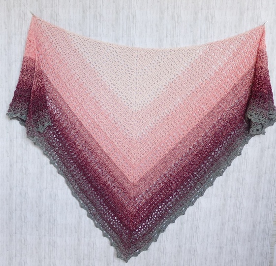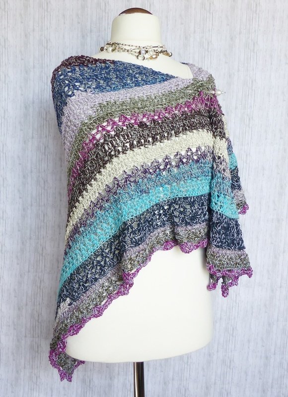 Natürlich kann man das Tuch auch mit Farbverlaufswolle häkeln (siehe Bild)