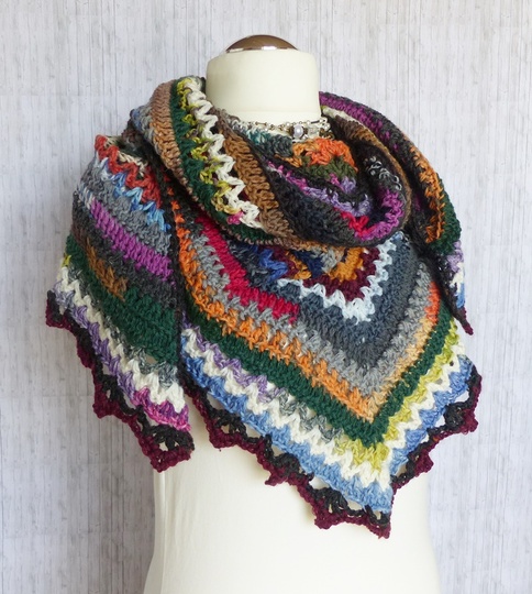 "Carmina" ist ein leicht zu häkelndes Dreieckstuch. Das Einzigartige erhält das Tuch aufgrund der Wollreste-Verwertung. So wird das Tuch schön bunt. Keine Angst vor Fäden vernähen - beim Farbwechsel werden die Fäden mit eingehäkelt, vernähen nicht nötig!