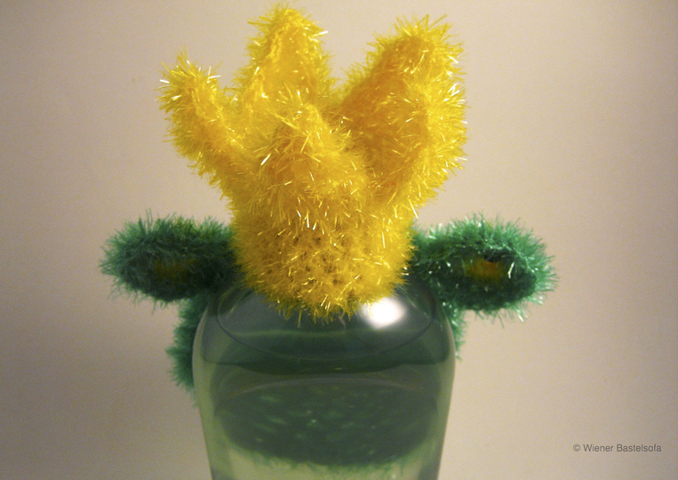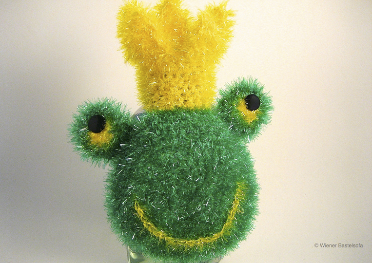 Mit je einem Garn in gelb und grün kannst du 4 Stück häkeln (in gelb bleibt noch viel Rest für andere Projekte) und so auch anderen Menschen eine Freude bereiten... egal ob du ihn als Einstandsgeschenk zu einer Wohnungseinweihung verschenkst oder deinem Prinz/ deiner Prinzessin so sagen willst, dass er/ sie heute kein Frosch sein und den Abwasch machen soll.