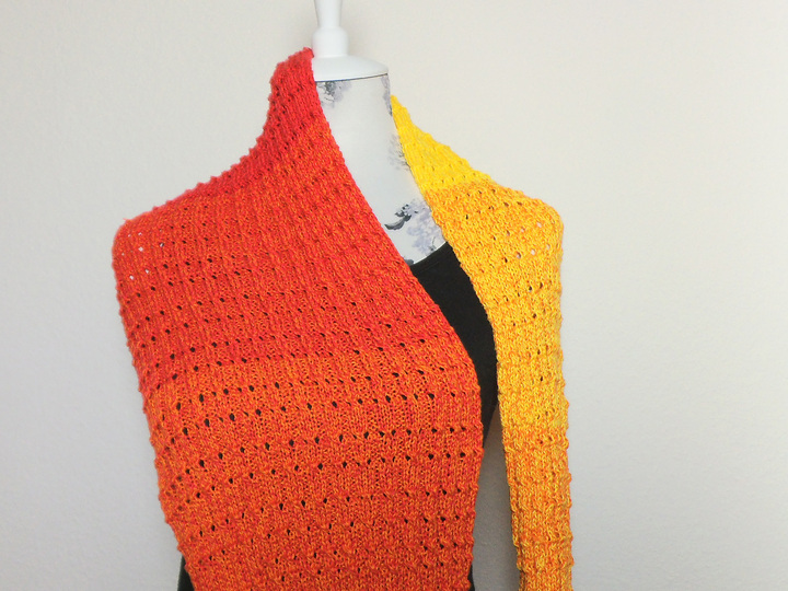 Du brauchst folgende Kenntnisse: Maschen aufnehmen, rechte und linke Maschen, Umschlag, Maschen (überzogen) zusammenstricken, Maschen abketten