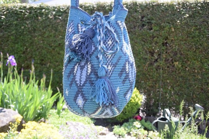 Die bunte Wayúlia Mochila Beuteltasche, kann dein Lieblingsaccessoire für jeden Tag werden und sorgt für Urlaubsfeeling. Auf alle Fälle ein Hingucker bei allen Stylings, und es macht wirklich riesen Spaß zu häkeln.