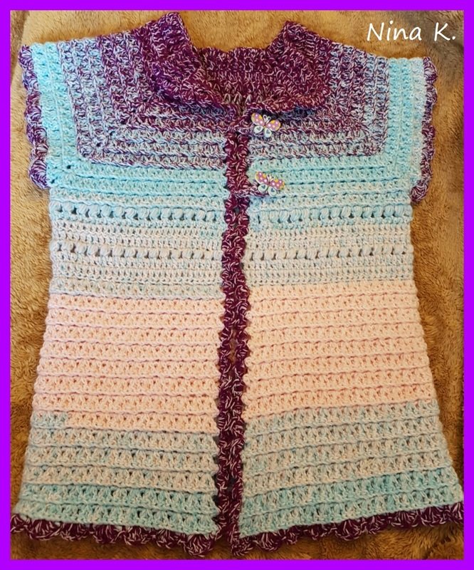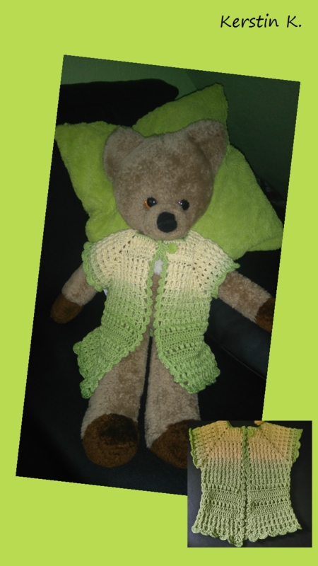 Gefachtes Garn, 4 fädig, Verbrauch 115gr für Gr. 98 (Mädchenweste) und 70 gr. für Gr. 74 (Jungenweste), für jede Größe kleiner oder Größer 4 fädig, braucht ihr ca 25 bis 50 gr. mehr oder weniger.
