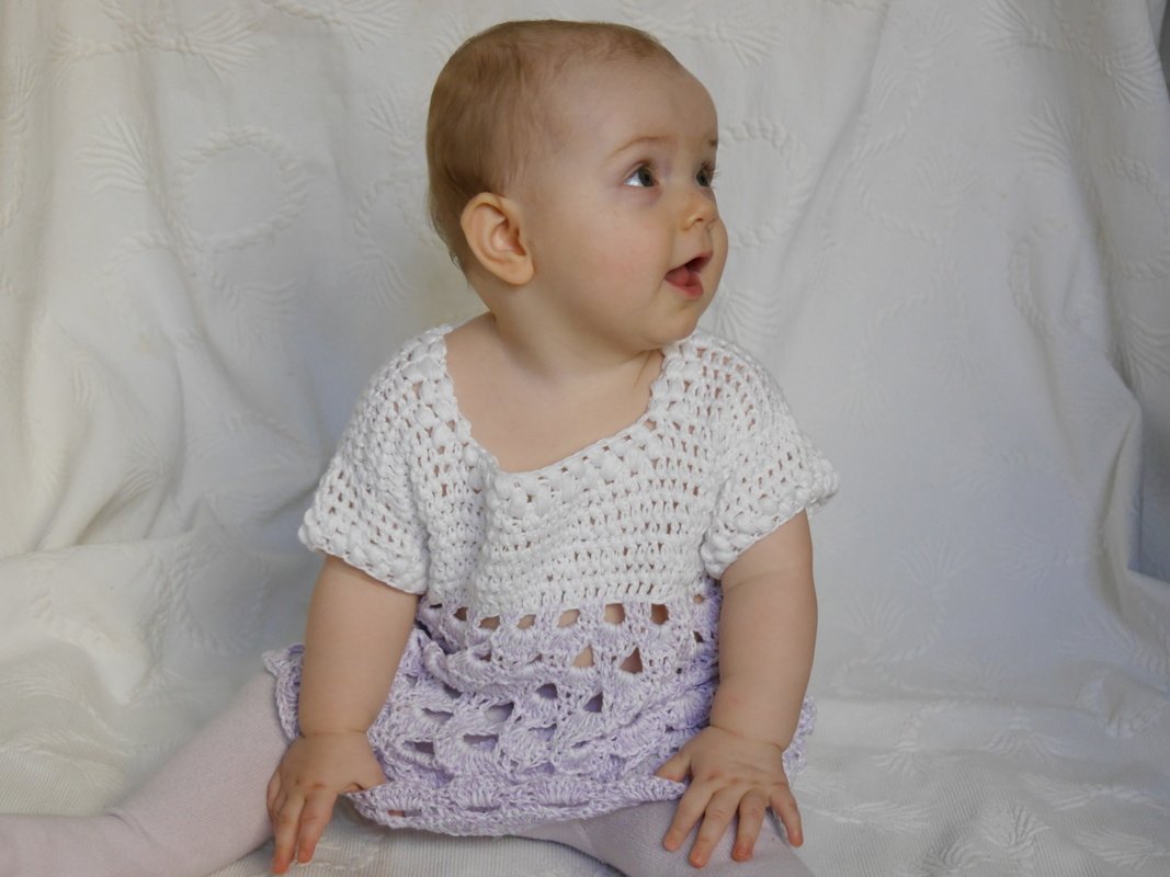 Ein süßes Kleidchen für kleine und große Mädchen .Hier kommen Büschelmaschen zum Einsatz ,die in der Anleitung separat erklärt werden.