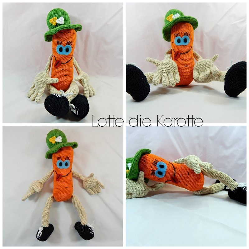 Die Karotte hat eine Größe von ca 30 cm, bei in der Anleitung beschriebenem Material.