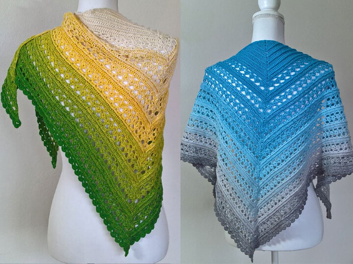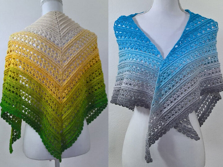 Hier gibt es ein Tuch mit einem einfachen Muster und durch die Wiederholungen der Reihen kann es in beliebiger Größe gehäkelt werden.