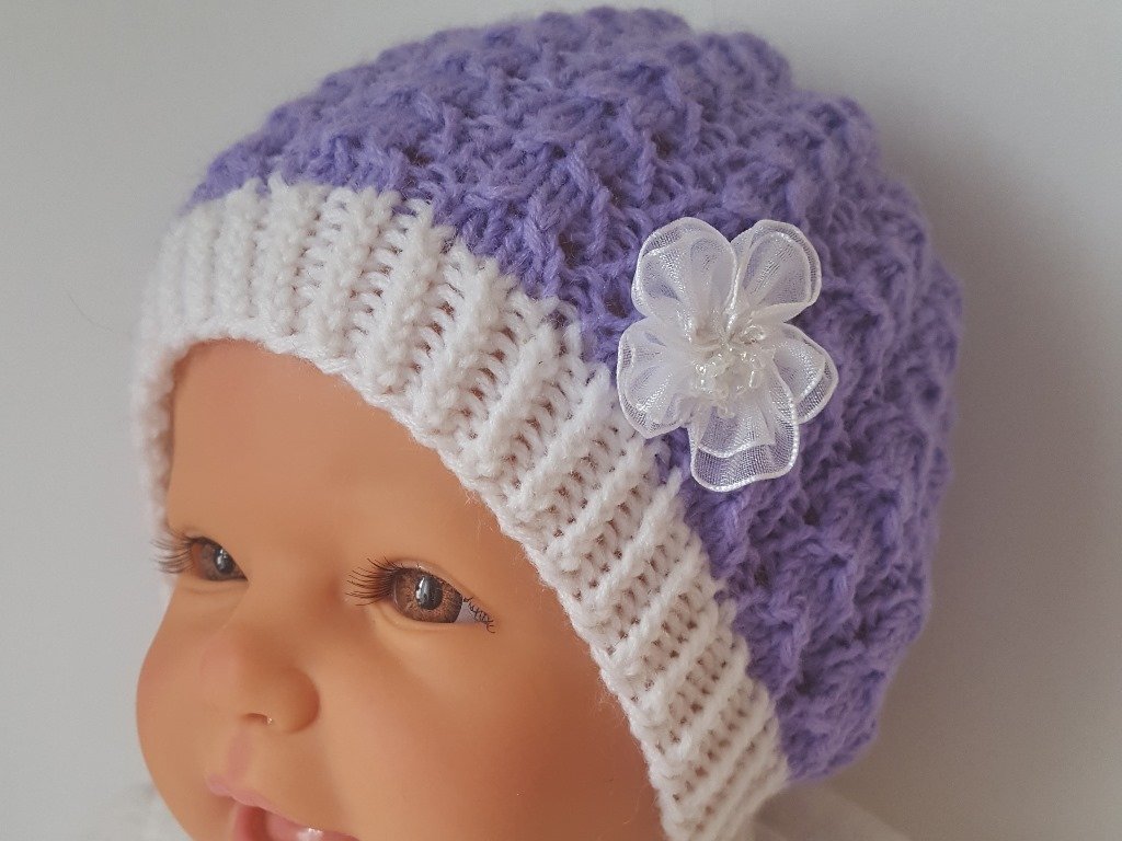 Strickanleitung Baby-Mütze, Babymütze mit Ajourmuster, ca. 3 - 8 Monate