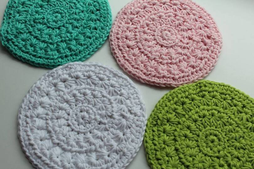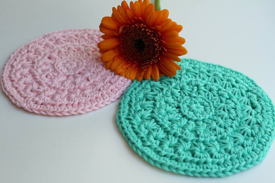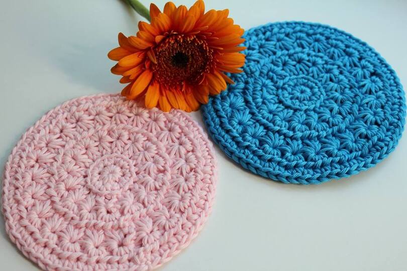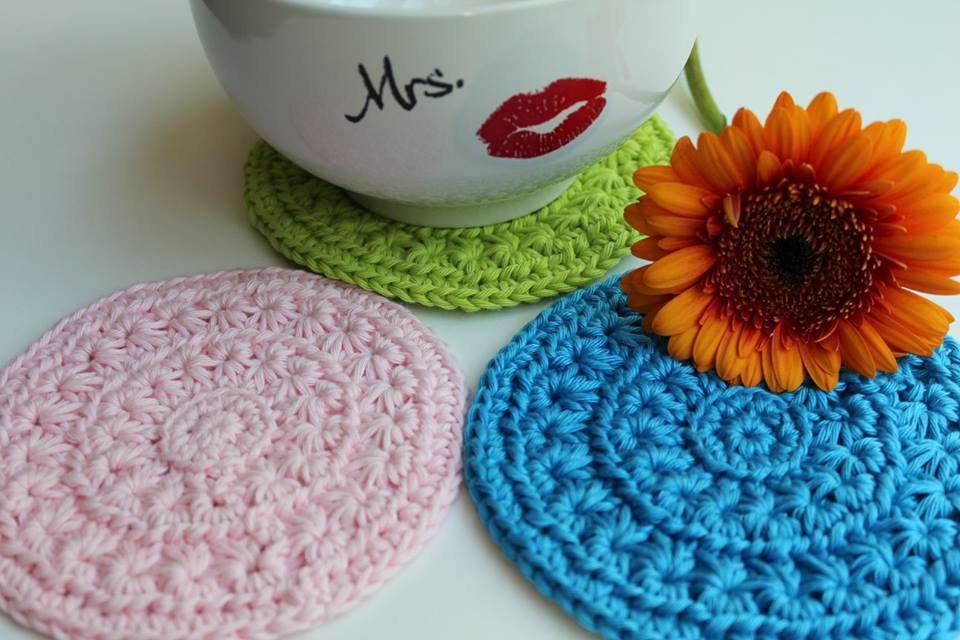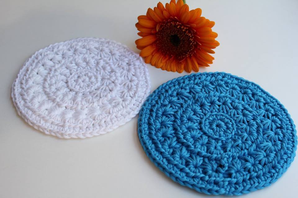 Material: 50 g (ausreichend für 2 Stück) 100% Baumwolle Schachenmayr, Qualität "Catania Grande" Häkelnadel 4,5 mm. Durchmesser: ca. 13 cm.