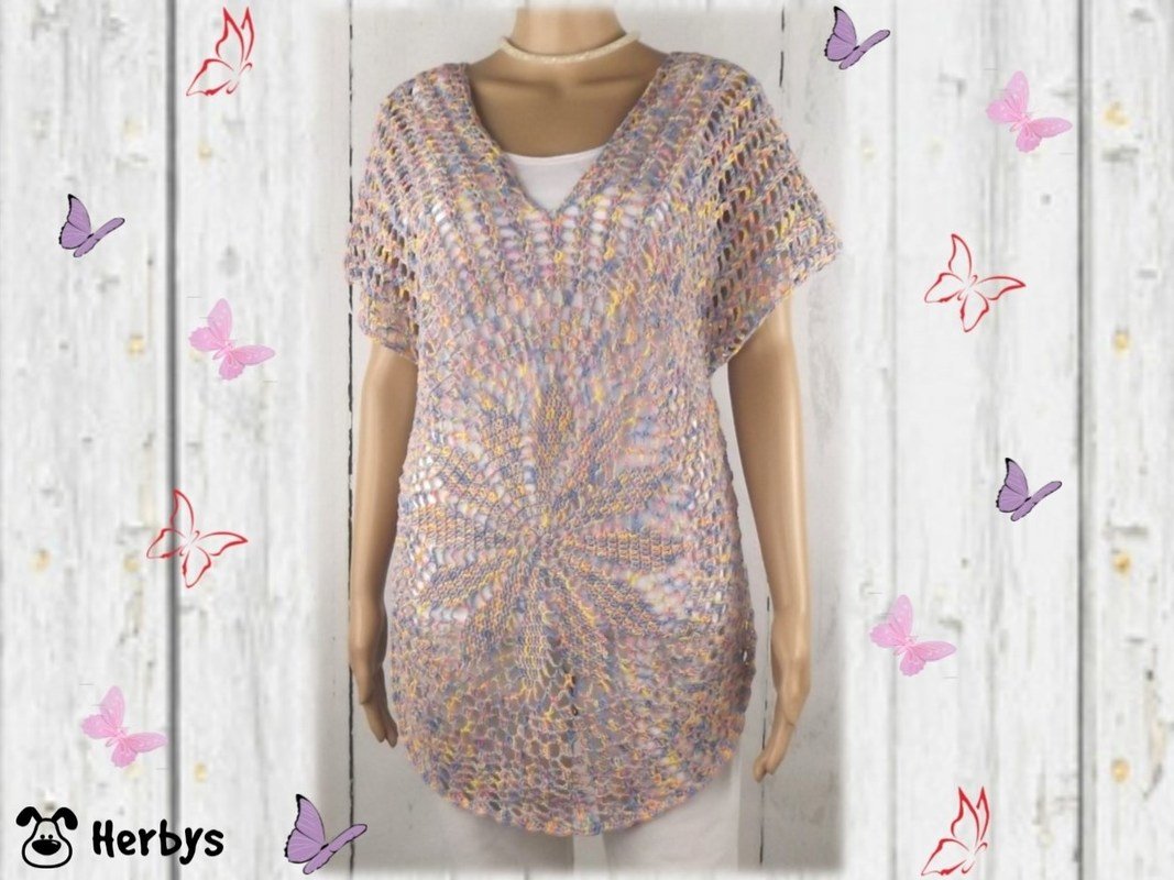 Diese sommerliche Tunika aus Baumwolle ist leicht zu häkeln und schmeichelt jeder Figur. Durch die seitliche Abrundung und dem V - Ausschnitt kaschiert sie das ein oder andere Eis und zaubert uns eine tolle Silhouette!