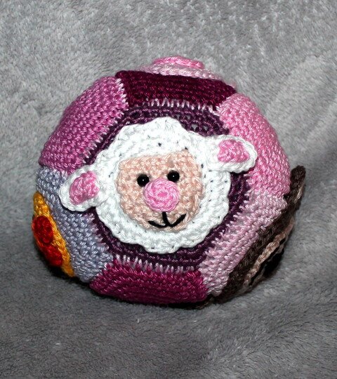 Fertig gehäkelt wird der Ball ca 12 cm hoch.