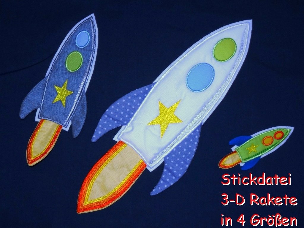 ♥ Stickdatei 3 D Rakete in 10 cm und 18 cm ♥