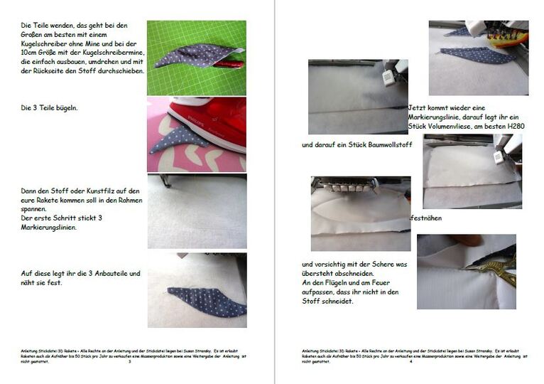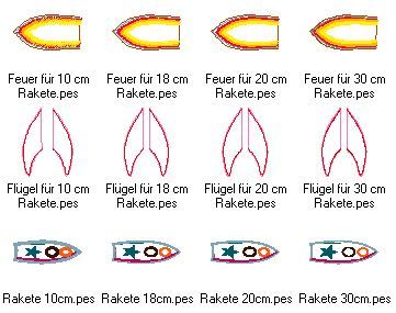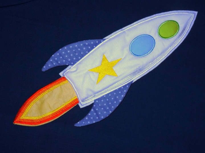 Die tollen Raketen werden komplett mit der Stickmaschine hergestellt