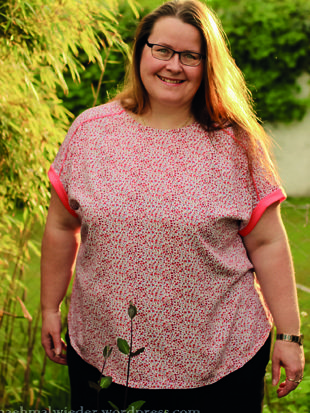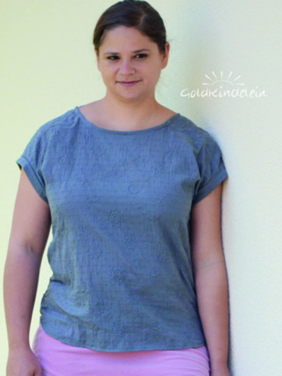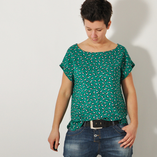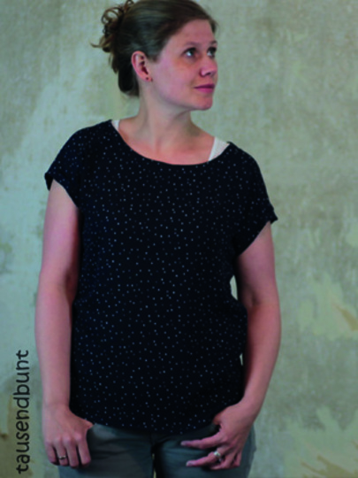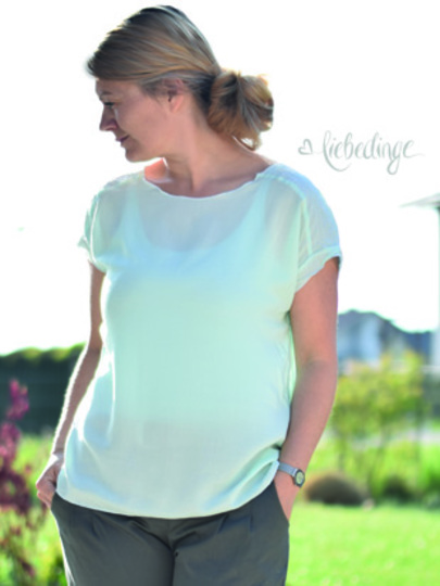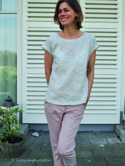 Die SOMMER.bluse ist eine rasch genähte Bluse in lässiger Form: Die Schulternaht ist etwas nach vorne versetzt und die Ärmel bestechen durch einen kleinen Umschlag, der mit ein paar Stichen fixiert wird.