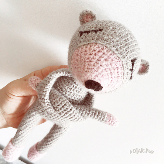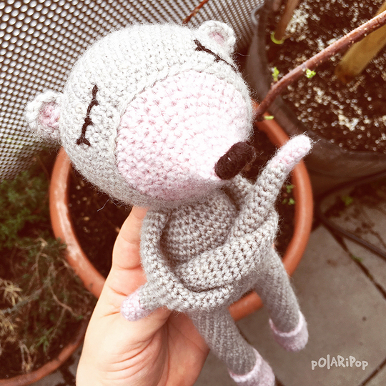 Meine lieben Häkler, Ich habe leider einen kleinen Fehler in der Anleitung gefunden, und zwar auf Seite 5. Hier musst du den Kopf unbedingt mit grauer Farbe beginnen, erst später wird auf rosa für die Schnauze gewechselt. Sorry für die Umstände!