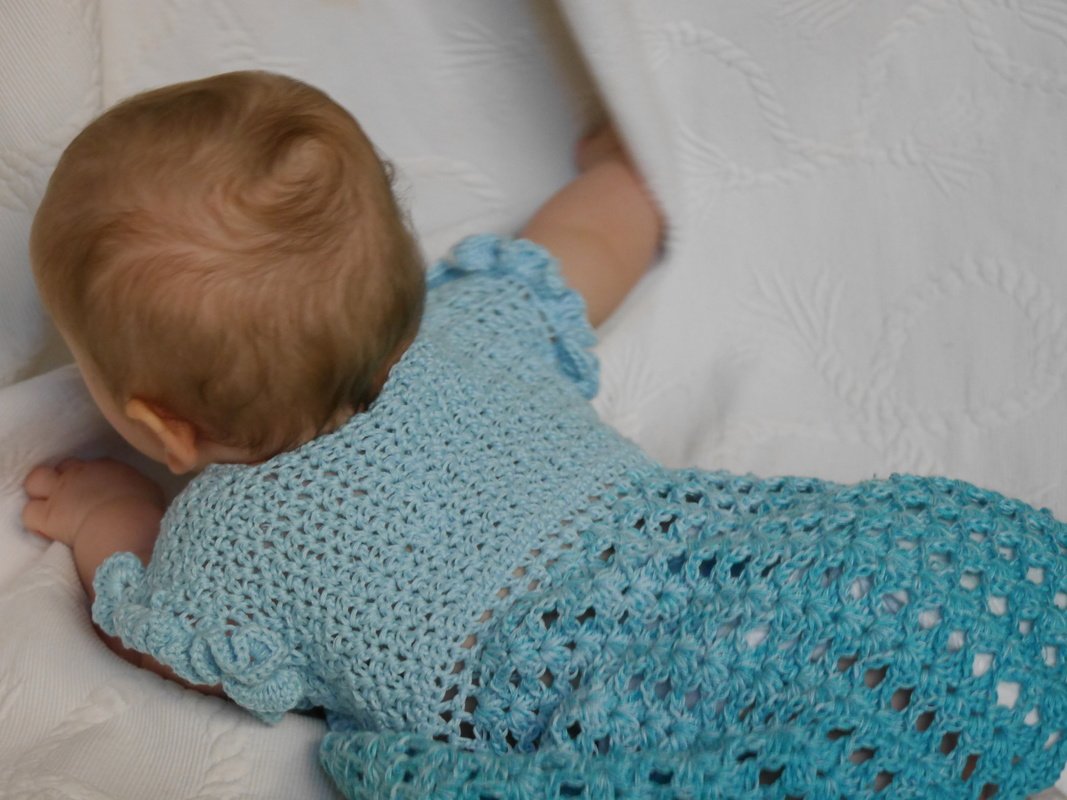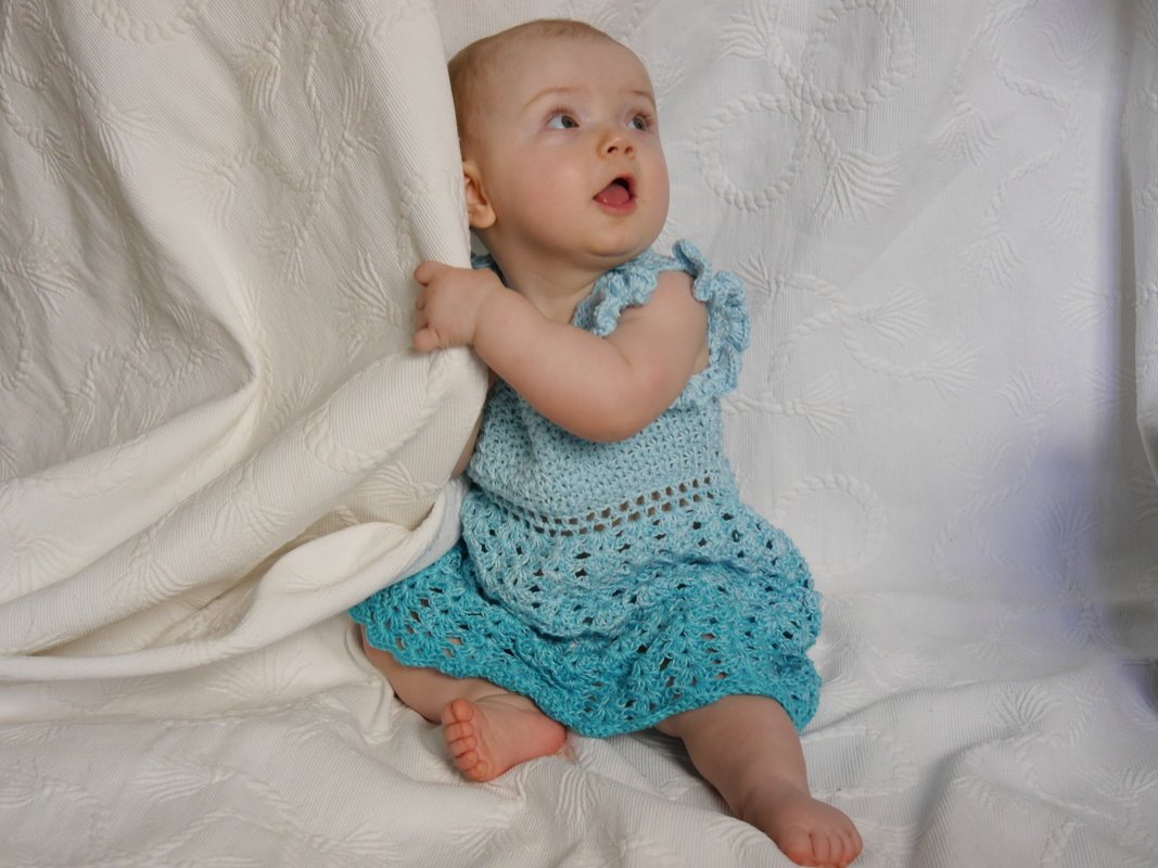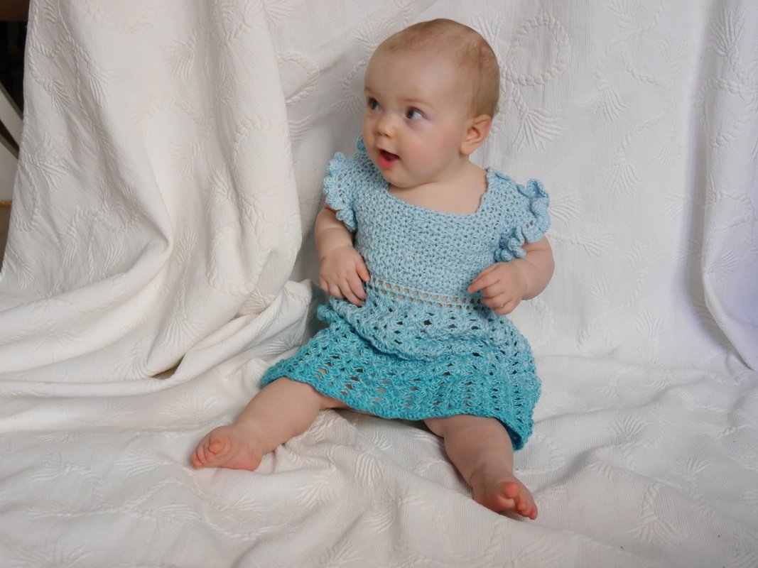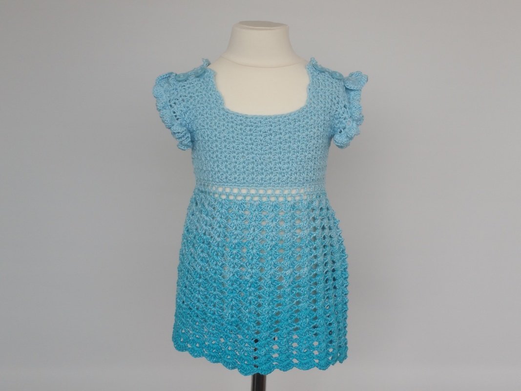 Viele verspielte Details ,wie zum Beispiel die Rüschen an den Ärmeln und das romantische Häkelmuster im Rockteil lassen das Kleid zu etwas besonderem werden .