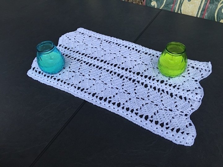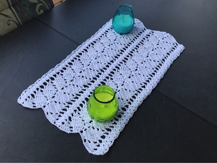 Ich habe hier eine wunderschöne Anleitung zum Häkeln eines Tischläufers mit wunderschönem Blütenmuster.