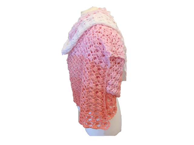 This shawl is crocheted in one piece from 3-ply variegated yarn with a yardage of 1093yds/7oz. and, thanks to the step by step instructions, it is quick and easy to make also for beginners. Annexed to the step by step instructions are the (very neatly handwritten) crochet symbols.