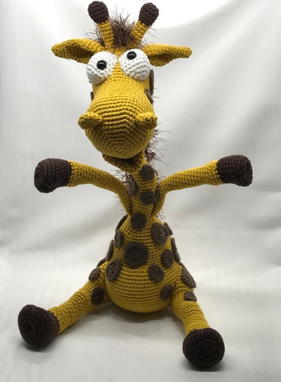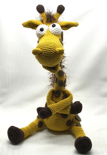 Giraffe Pedro wird mit der angegebenen Wollstärke ca. 28 cm gross.