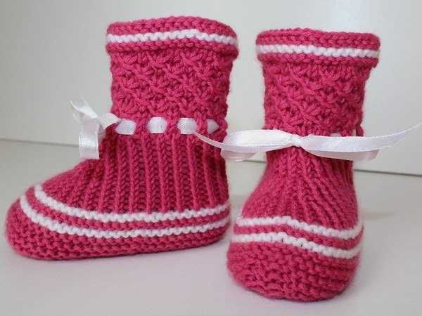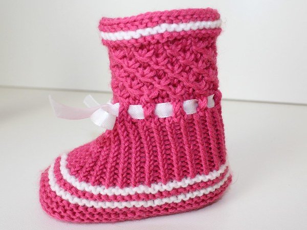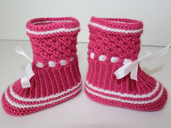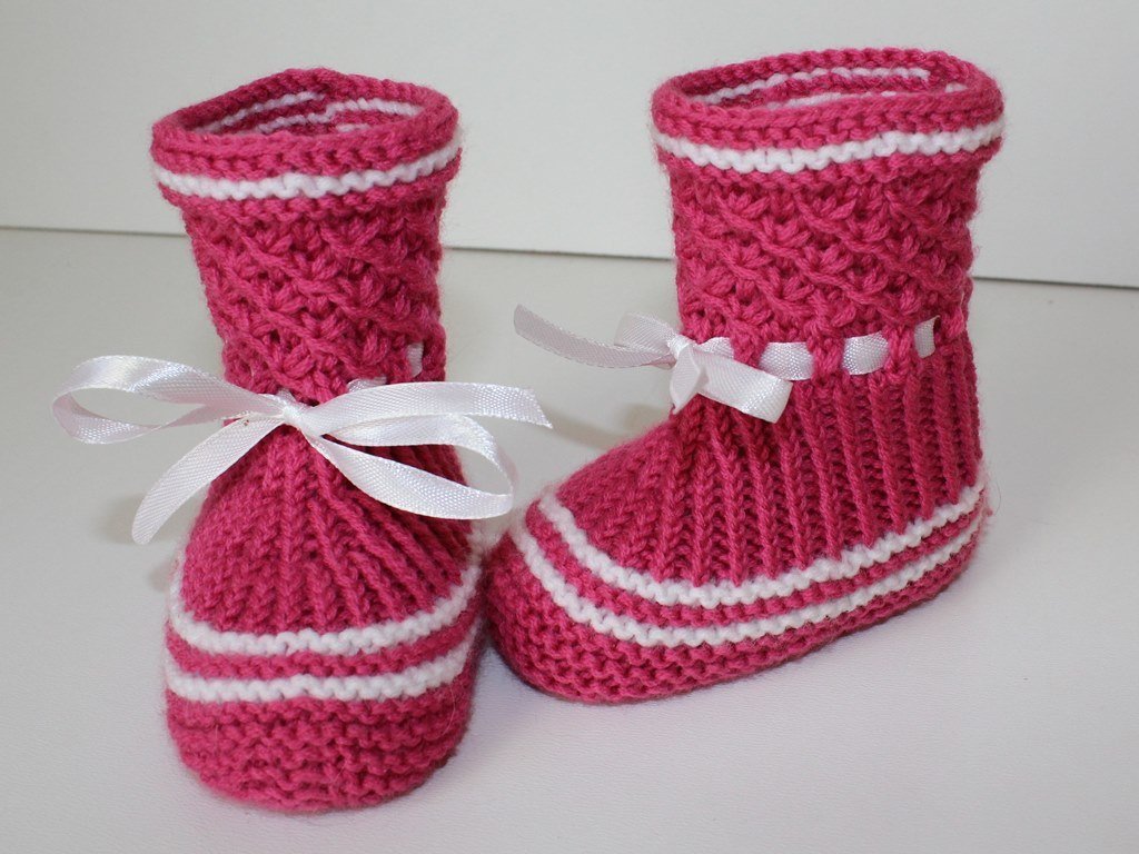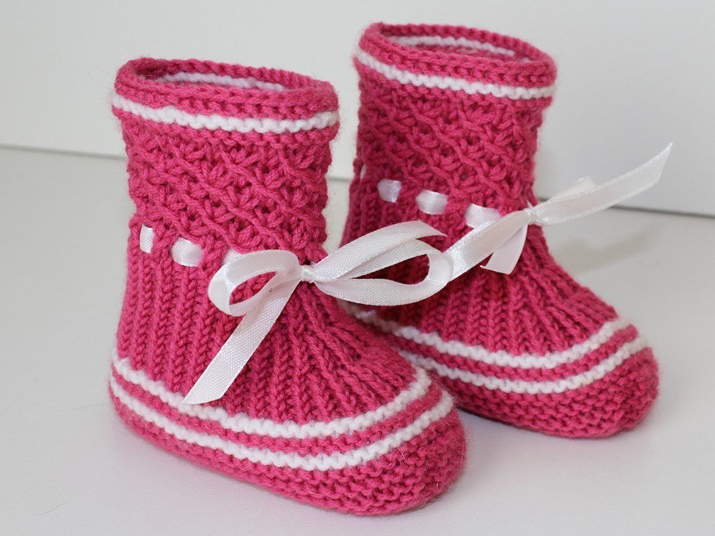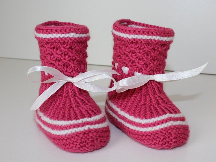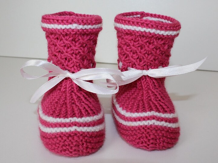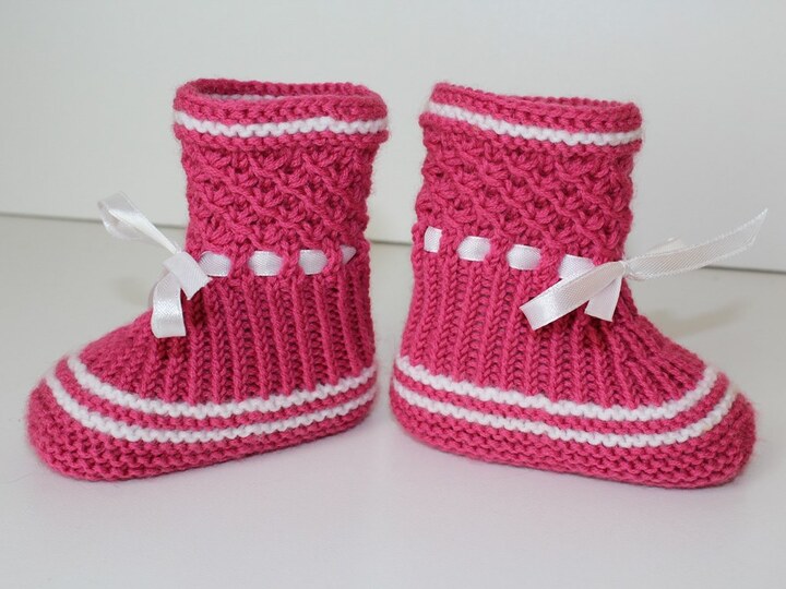 Strickanleitung Baby-Booties, Stiefelchen, Babyschuhe, Sternchenmuster, Sohlenlänge ca. 10 cm