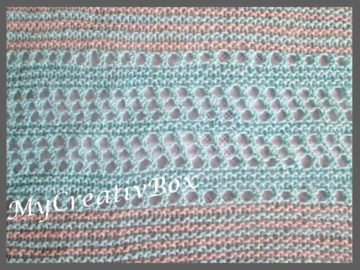 rechten Maschen, Umschläge, Maschen zunehmen, 2 Maschen zusammenstricken