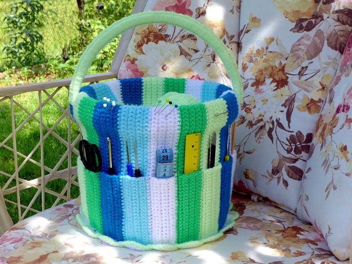 Endlich ein schönes und praktisches Zuhause für unser Handarbeitswerkzeug. Im Handarbeits-Eimer finden alle Häkelnadeln, Scheren und sonstigen Werkzeuge ihren Platz. Schön nach Größen geordnet hat man alles im Überblick und muss nicht mehr lange suchen. Das aktuelle Häkelzeug kommt in den Eimer. So ausgerüstet könnt Ihr Euch mit Eurem Handarbeits-Eimer überall niederlassen und habt immer alles dabei.