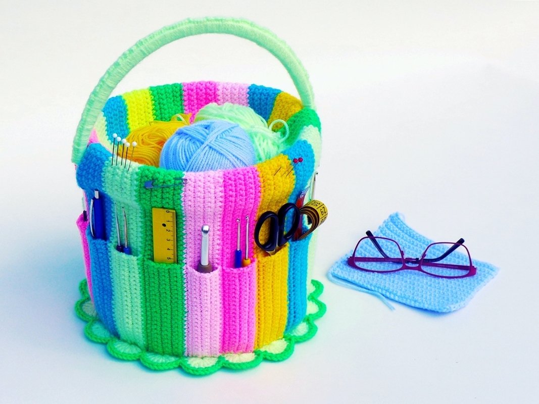 Mehr schöne Körbe, Taschen und Utensilos findet Ihr in meiner Kollektion: