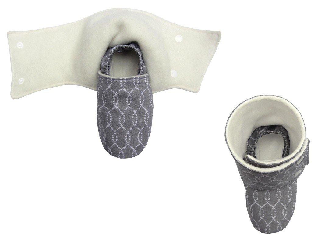 Meine Empfehlung: Die Sohle kann man ganz einfach mit aufbügelbaren Sockenstoppern oder mit Sockenstop rutschfest machen.