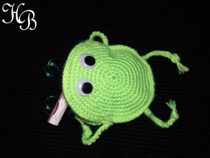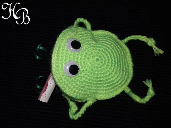 Dieser kleine Frosch ist schnell und einfach gemacht und lässt sich gut als Geschenkehalter verwenden.