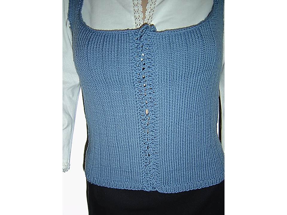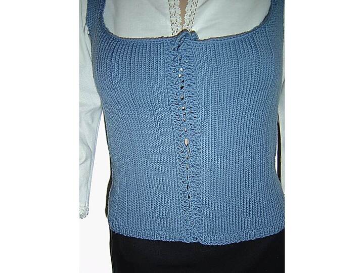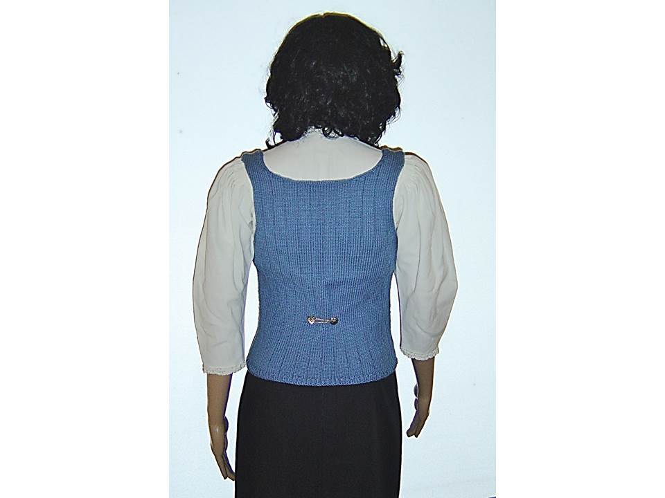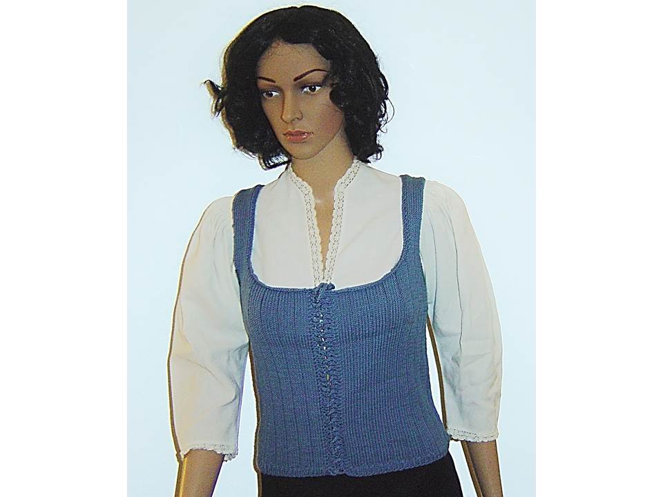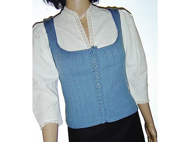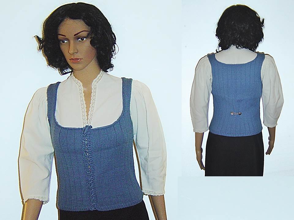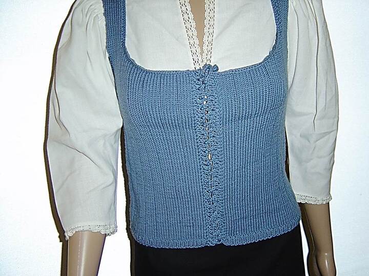 Dieses (Trachten-)Mieder ist geschnürt mit einer gehäkelten Luftmaschen-Kette; alternativ können aber auch (Trachten-)Knöpfe angebracht werden – ganz nach Belieben.