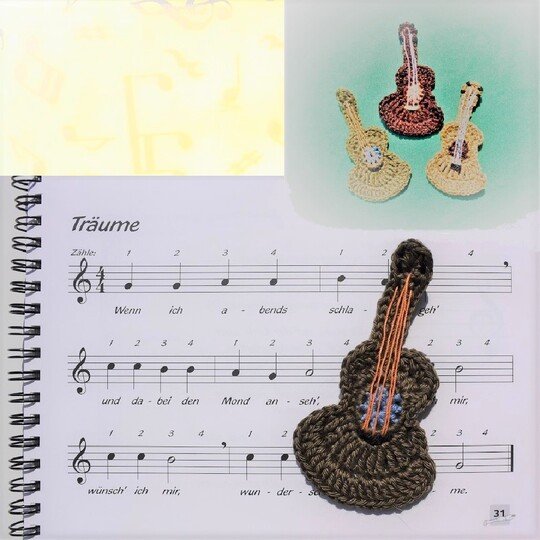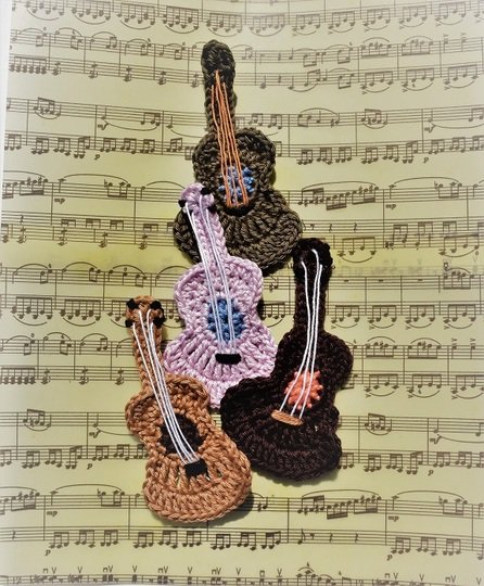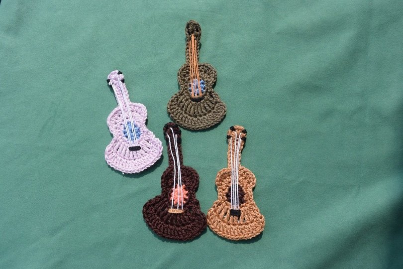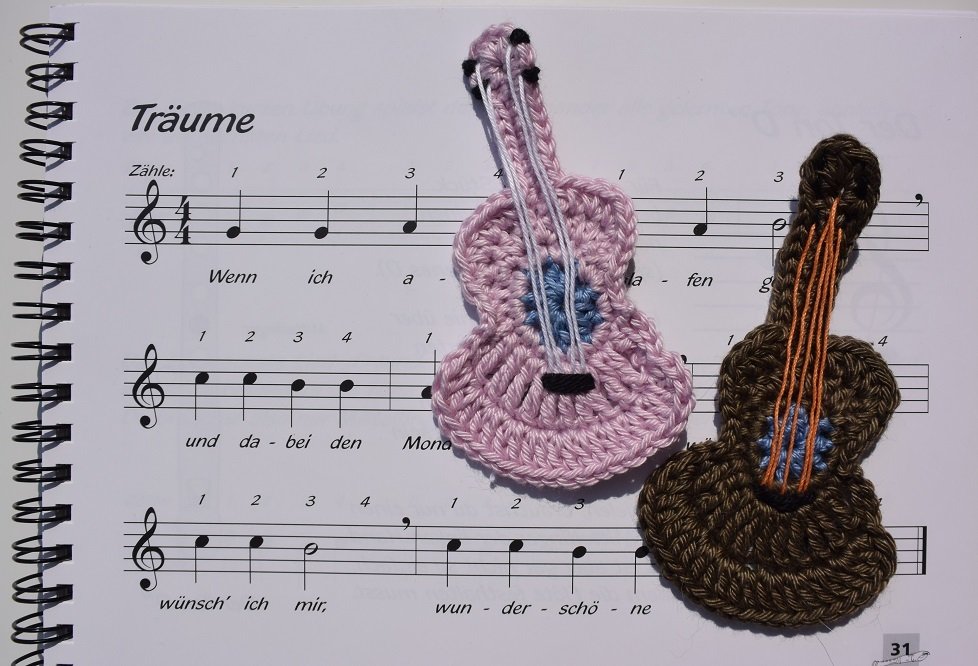 Hinweis: Beim vorgestellten Produkt handelt es sich NICHT um fertige Gitarren, sondern um eine Schritt-für-Schritt-Häkel-Anleitung, die Dir hilft, eigene Gitarren zu fertigen.