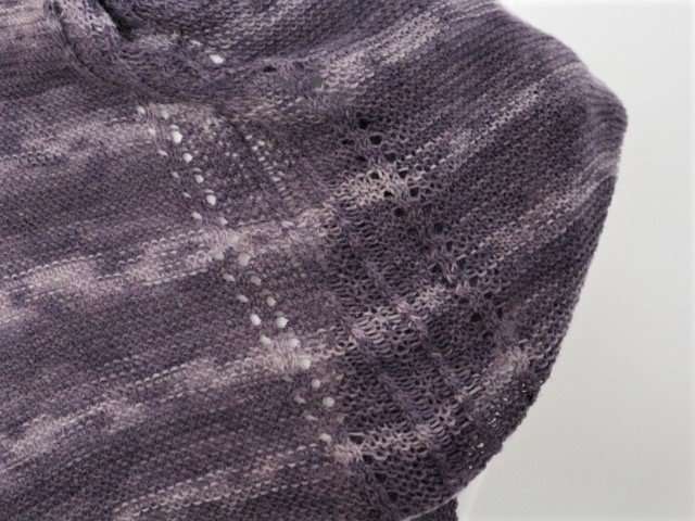 Die Maschenprobe ist nicht wichtig bei diesem Projekt. Eine andere Maschenzahl kann jedoch ein größeres oder kleineres Tuch ergeben und der Garnverbrauch ändert sich.