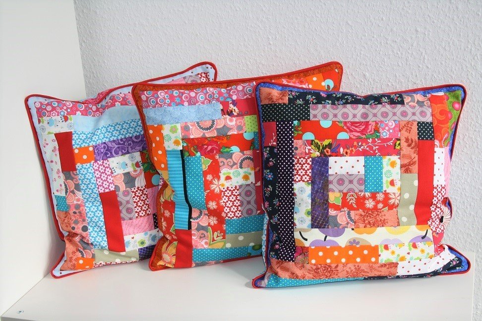Ganz toll sehen diese fröhlichen Kissen dann z.B.auf der Gartenbank aus,auch toll zu nähen mit Kinderstoffresten dann fürs Kinderzimmer.