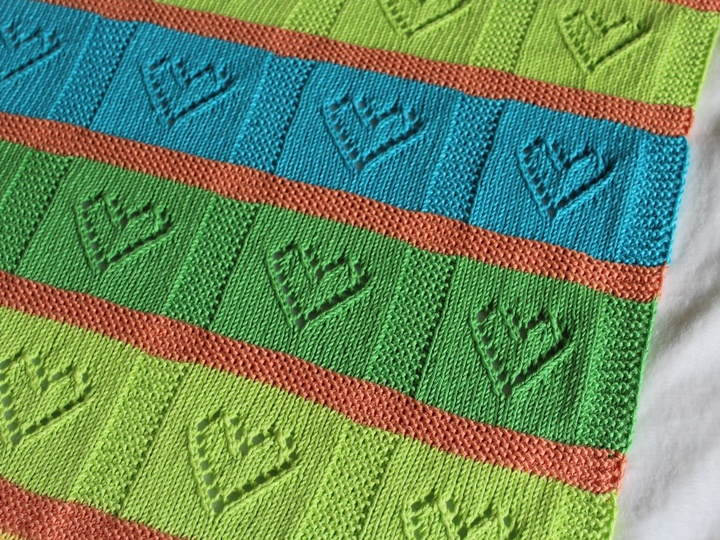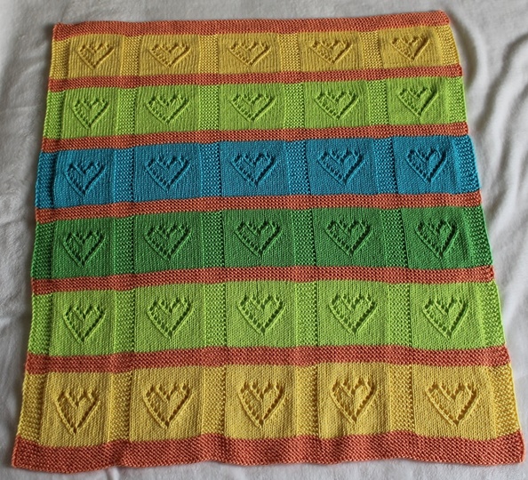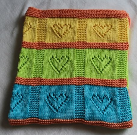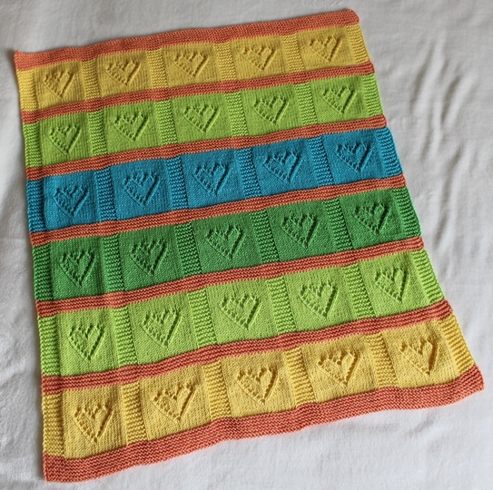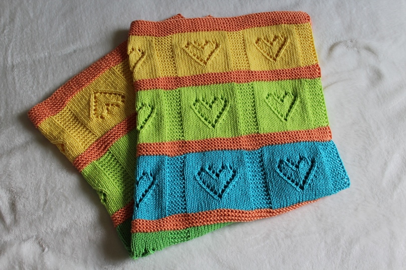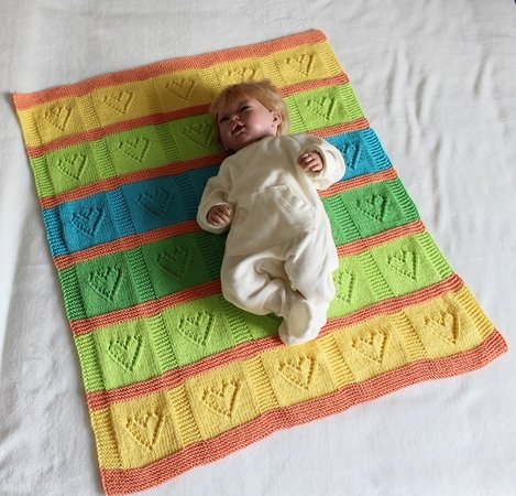 Strickanleitung Babydecke, Krabbeldecke, Plaid mit Lace-Herzen