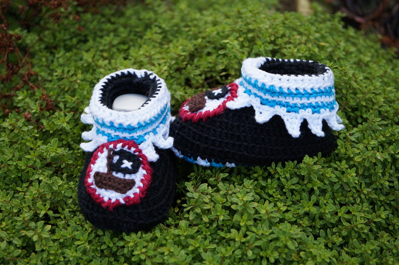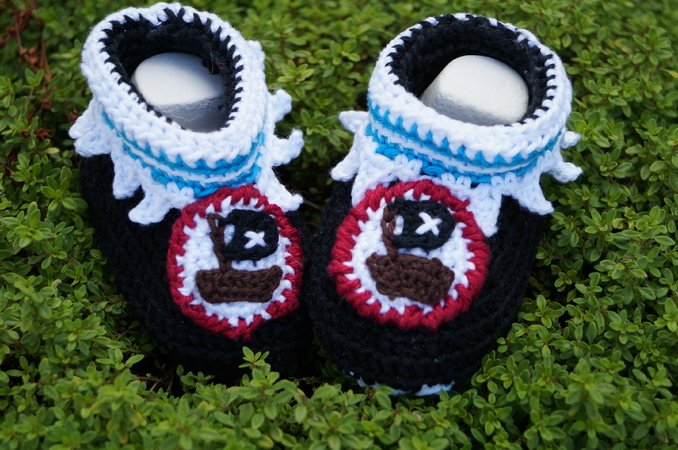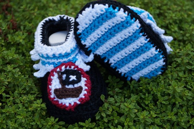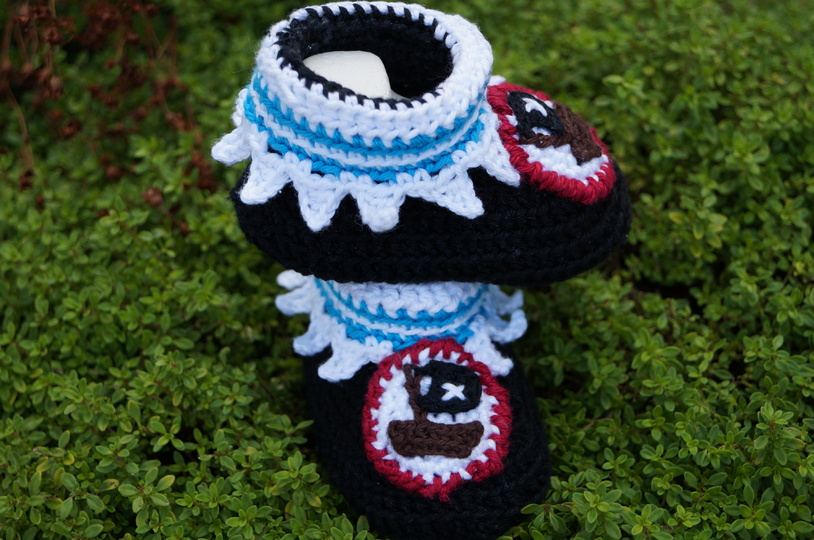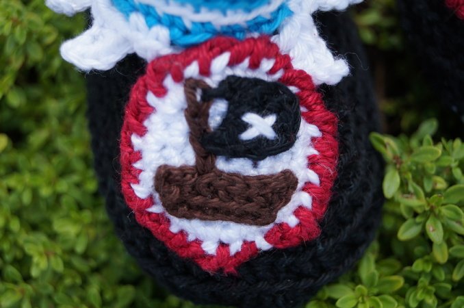 Ebenso ist natürlich auch erklärt wie der niedliche Button mit dem kleinen Piratenschiff gehäkelt wird.
