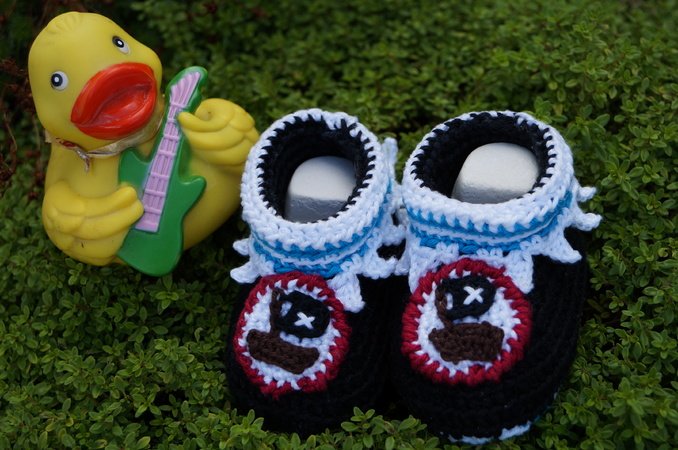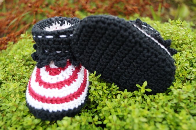Natürlich dürft ihr die Schuhe auch in Euren Lieblingsfarben häkeln.