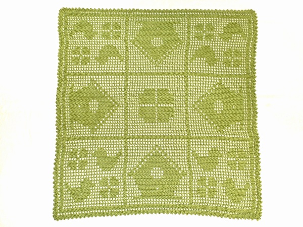 Ich habe in der Anleitung ausführlich beschrieben, wie sich die Decke aufbaut, wie Ihr die Häkelschriften zusammen setzt und gebe noch ein paar kleine Tips am Rande. Die Muster habe ich in 9 Häkelschriften aufgeteilt, so daß Ihr sie bequem in gut leserlicher Größe ausdrucken und zusammensetzen könnt.